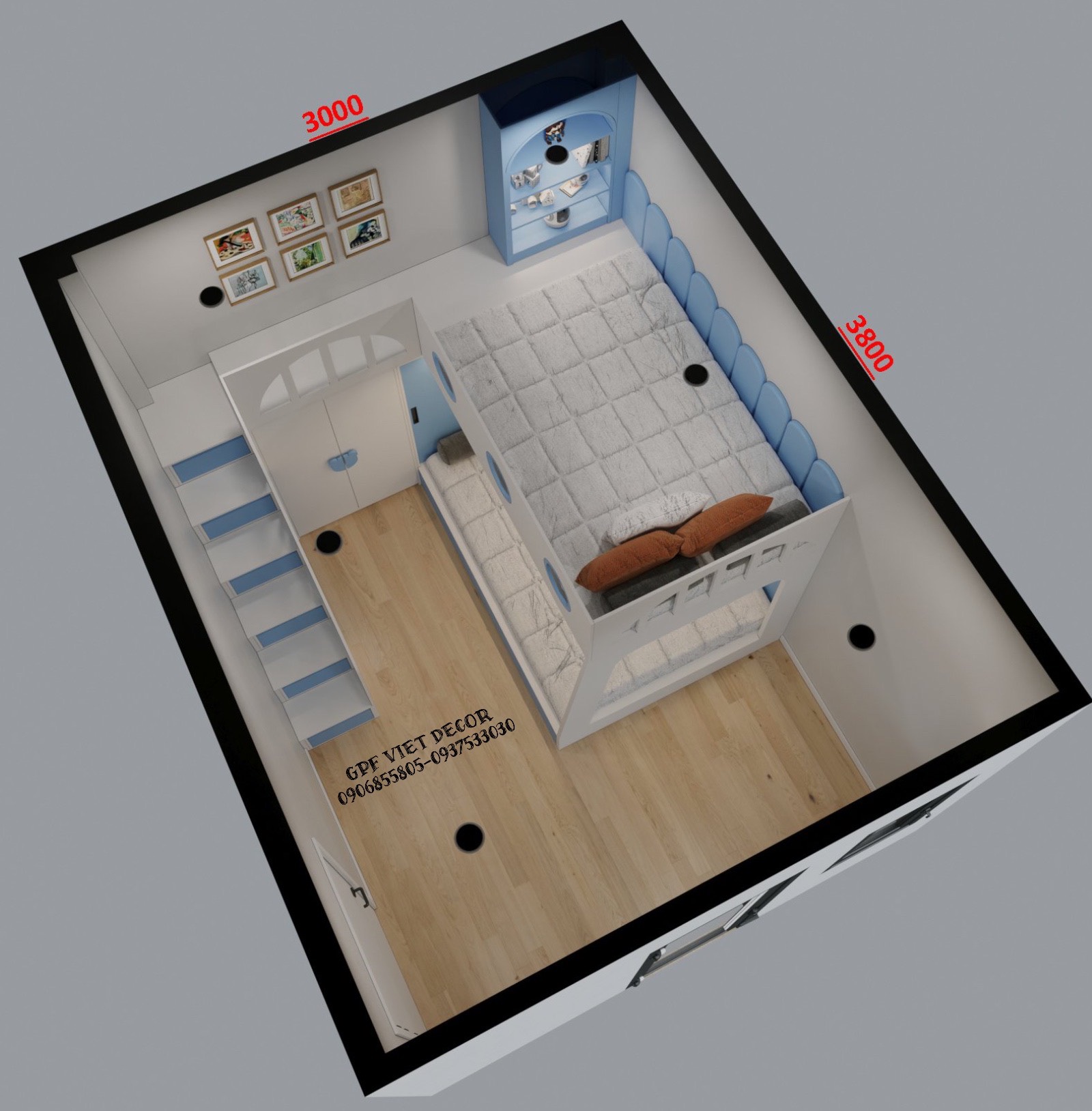 Thiết kế giường tầng cho 2 bé trai nhà chị Phương