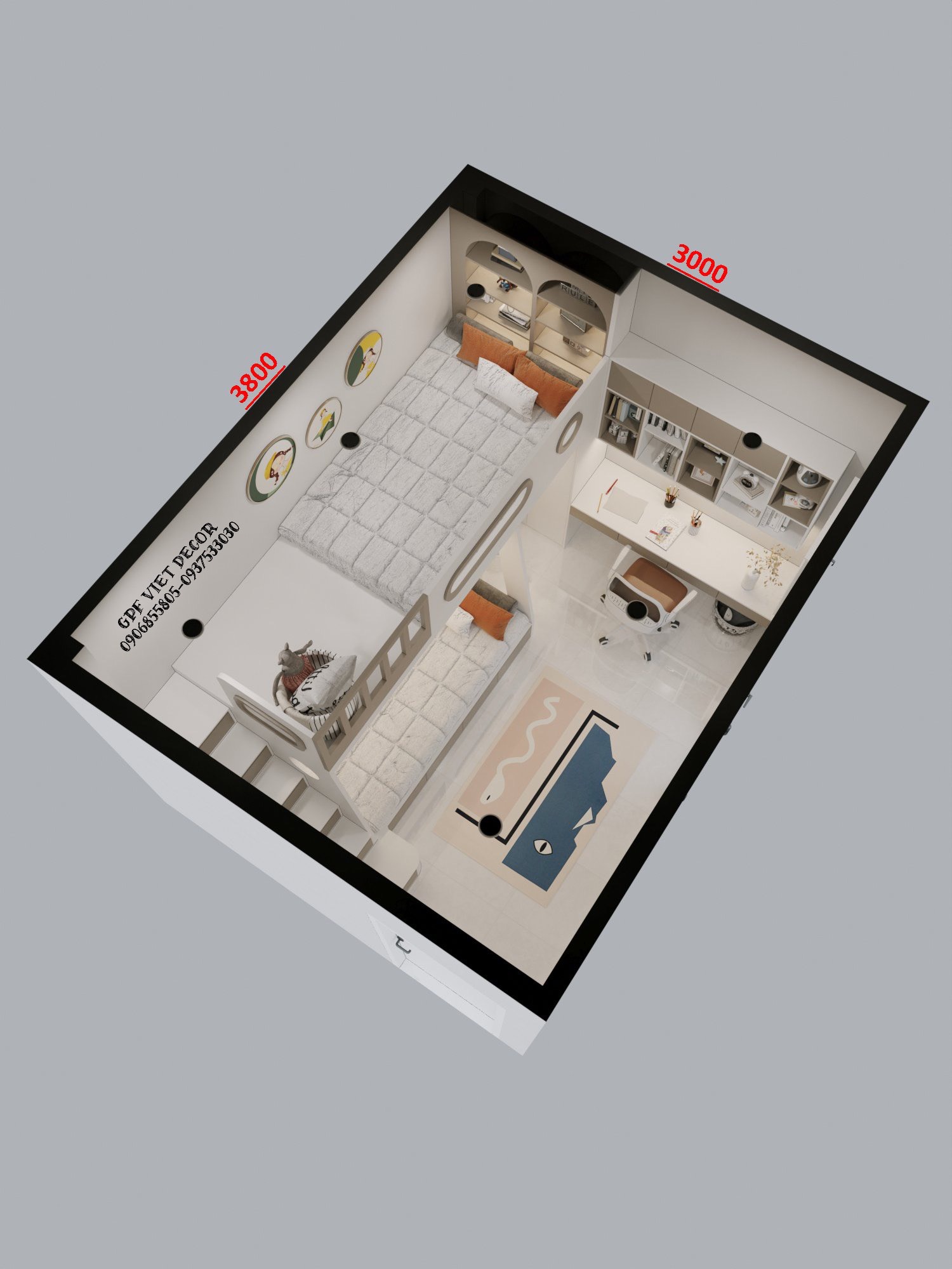 Hoàn thiện nội thất phòng ngủ giường tầng, bàn học, tủ quần áo